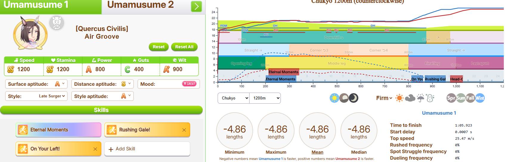 >>6239673 Сейчас в общем по итогу 20 ранов у них обеих есть такие моменты когда из-за остальных семи участниц она остаётся заблокированной и не может вырваться из жопы мира. Я думал, что та что с S на лонг будет сильнее процентов на 20 чисто из-за оценки на дистанцию, а в итоге они практически одинаково бегали. Та что лонг S очень часто на финишной прямой оказывалась впритык к S турфовой, совсем немного не дожимая и завершая гонку с отставанием буквально в нос-полтора корпуса. Бля, неужели ещё одну придётся делать