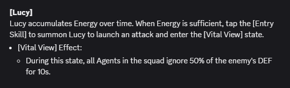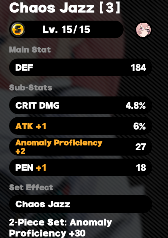 Buff After an Agent applies an Attribute Anomaly to an enemy, the target's Stun DMG Multiplier increases by 30% and their All-Type DMG RES reduces by 20% for 10s. Repeated triggers reset the duration. When an Agent is in an Ether Veil, their attacks ignore 10% of enemy DEF and deal 20% more Attribute Anomaly DMG to enemies.