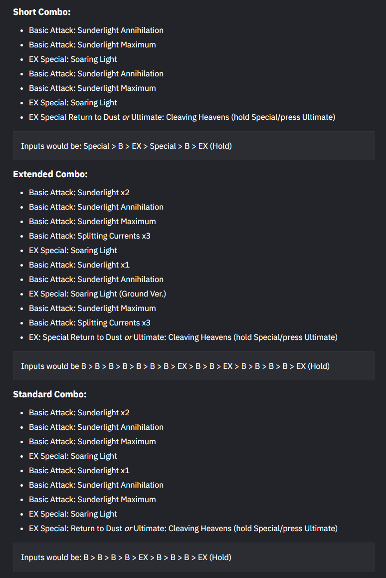 На самом деле у неё там несколько комбух, можно через 1 базик и падение, или через 2 базика и падение, зависит от того сколько времени тебе нужно. К примеру, ты знаешь что если дашь самую коротую комбу то у Диалинь не хватит пары сек на набор энергии для 3 ешек - делаешь комбу которая подольше, а если всё готово то сдаёшь самую быструю.