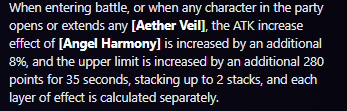 V2 Hotfix 5 Changes Sunna Angelic Assistance duration 40 seconds -> 35 seconds Ether Veil duration 30 seconds -> 35 seconds EX Special Bubblegum Pop MV 2219.1% -> 1885.1% EX Special Bubblegum Pop Daze 744.1% -> 917.3% EX Special Bubblegum Pop Energy Cost 60 -> 75 EX Special Special Camera Technique Daze 750.8% -> 953.3% Core Passive Level ATK% 18% -> 21% Core Passive Angelic Assistance ATK buff 30%, up to 1000 -> 14%, up to 490 Cat's Gaze Attack Agent MV 210% -> 360% Cat's Gaze Anomaly Agent MV 210% -> 480% Additional Ability Stun Multiplier duration 40 seconds -> 35 seconds Additional Ability extra ATK buff 15%. up to 30, for 15 seconds, up to 3 stacks -> 8%,up to 280, for 35 seconds, up to 2 stacks