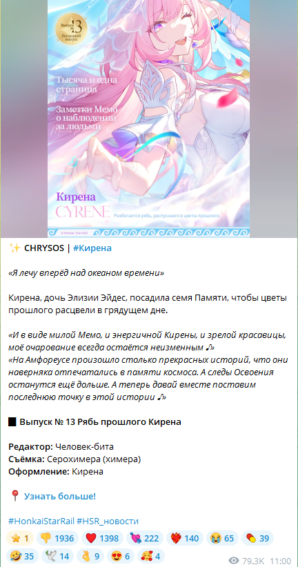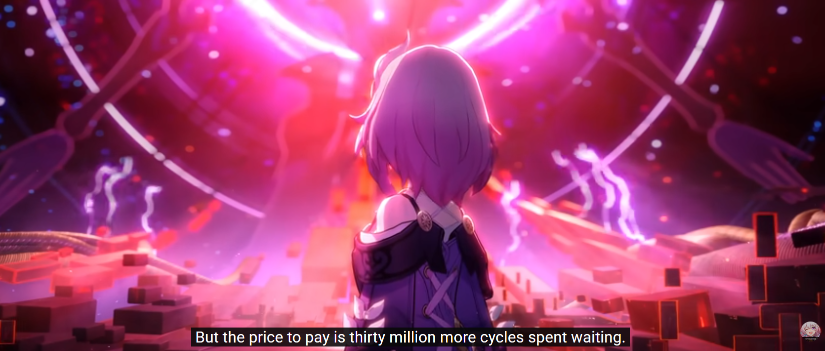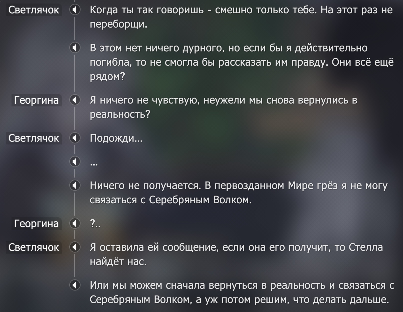 Начал проходить сюжетку 3.8 и всё так же охреневаю с тупорылости переводчиков на русский, раз за разом допускающих фактические ошибки. Вот здесь, например, на английском Георгина говорит “они вернулись в реальность”, подразумевая гг и Черную лебедь. А на русском “мы вернулись в реальность”, что есть бред - и буквально через пару фраз даже Светлячок предлагает вернуться в реальность. И такое постоянно. Отсюда выводы: переводчики на русский таки правда переводят с китайского, а не с английского (во всяком случае основной сюжет); переводчики на русский знают китайский хуже переводчиков на английский (или тем помогают китайцы фактчекингом); переводчики на русский - или дегенераты, не понимающие переводимое и хуярящие наобум, или им просто похуй. Ну и мои соболезнования япусикодебилам (вроде Синга), играющим на японском, не зная языка, - вы читаете бредовую отсебятину вместо сюжета.