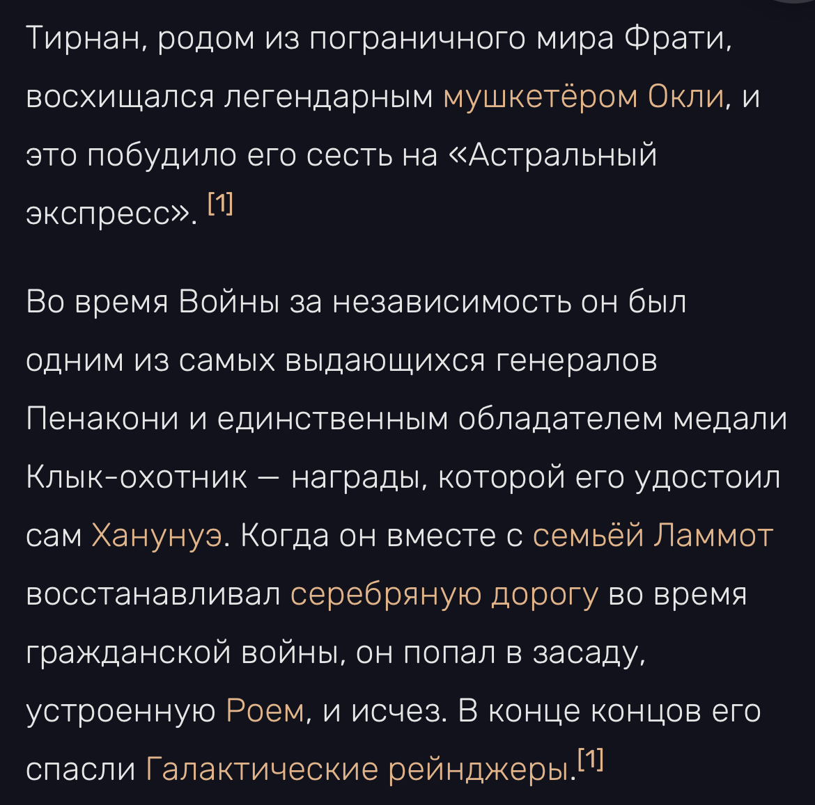 >>6202947 > Во время мятежа Тьернан вместе с кланом Мотыльков отправился перекладывать Серебряные рельсы, но подвергся нападению Роя и пропал без вести Дополню чтобы весь текст пепел глазами был