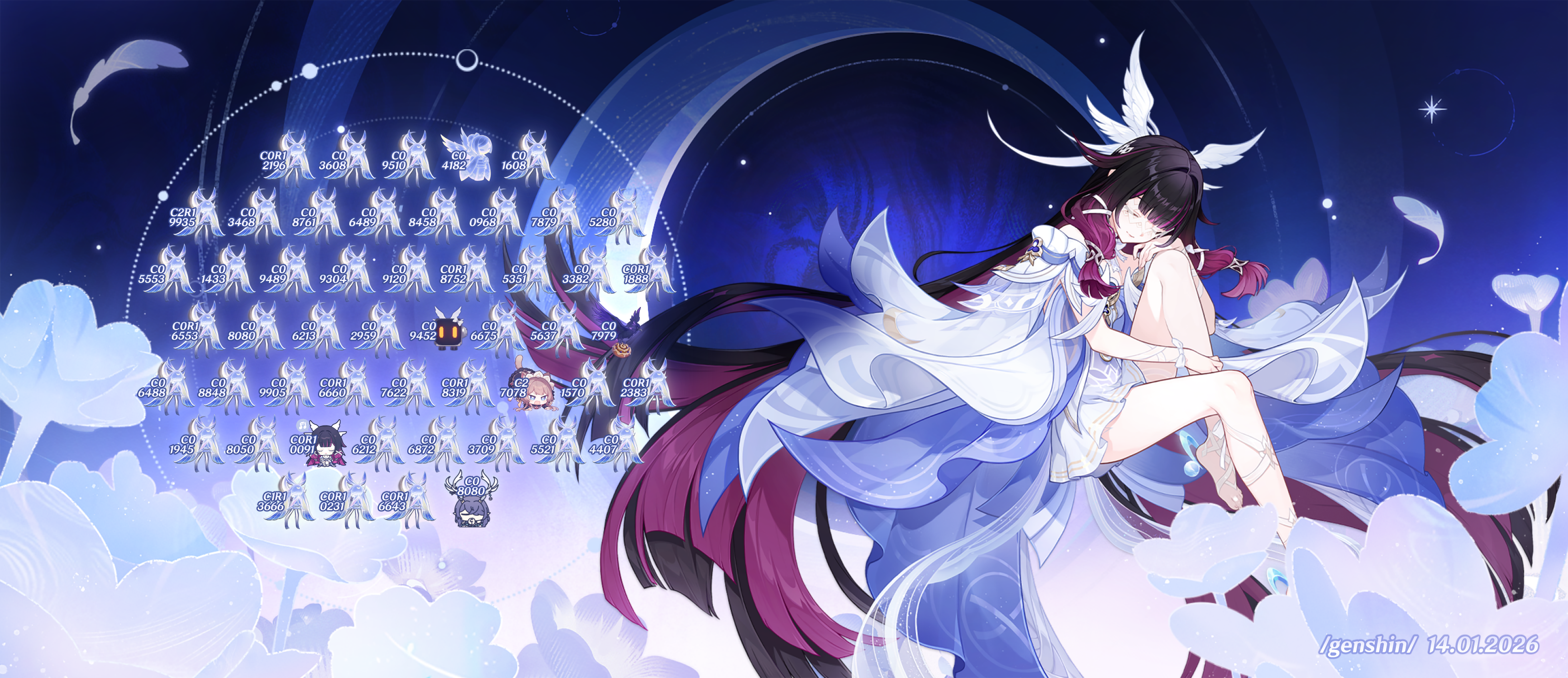 Записываемся на алтарик милой Коломбины. Запись: последние 4 цифры UID, количество созвездий Коломбины, которые планируете выкрутить, и планируемый уровень пробуждения её сигнатурного катализатора "Вызов ноктюрна", если будет. Например 8888 C0, 8888 C2R1.