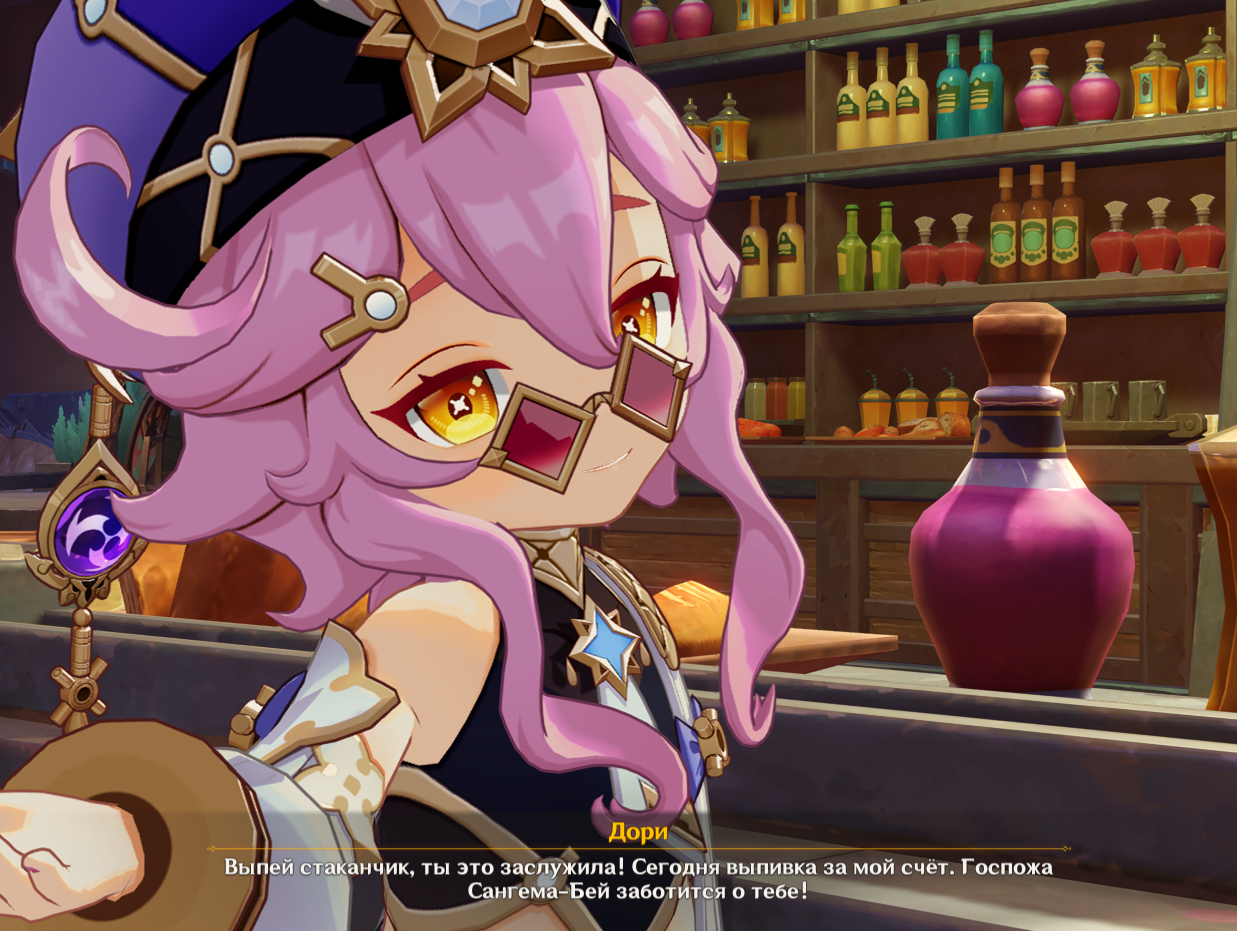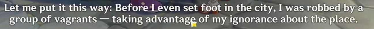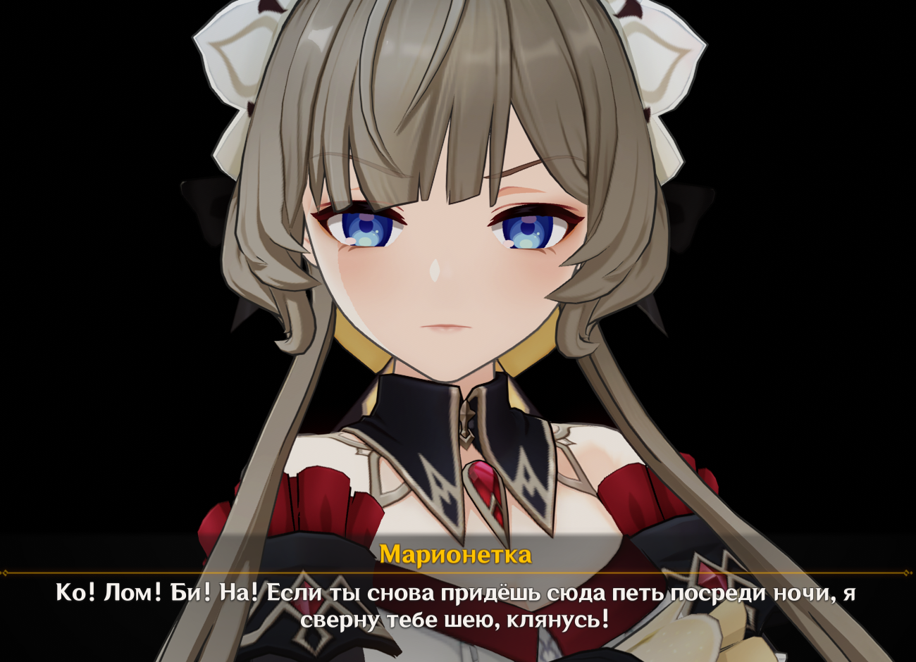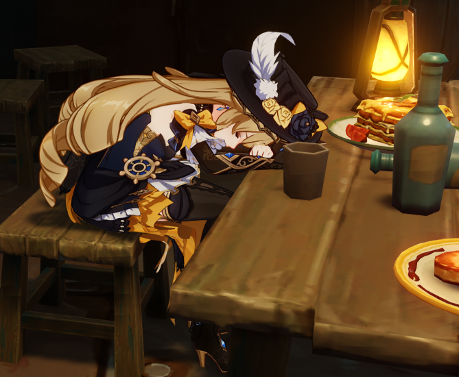 В Снежной, когда я была Третьей из Предвестников Фатуи, у меня было много привилегий. Мне не нужно было покупать билет на поезд или стоять в очереди в Королевскую труппу... А ещё, когда я ужинала в ресторане, мне могли... "возместить расходы"? Для меня это было слишком сложно, поэтому я просто ходила туда вместе с Сандроне или Арлекино.