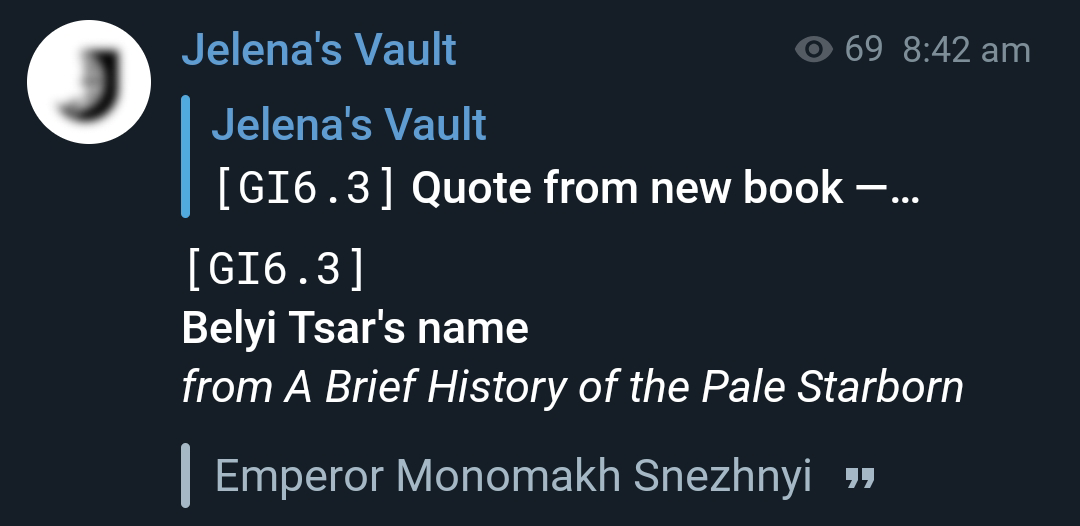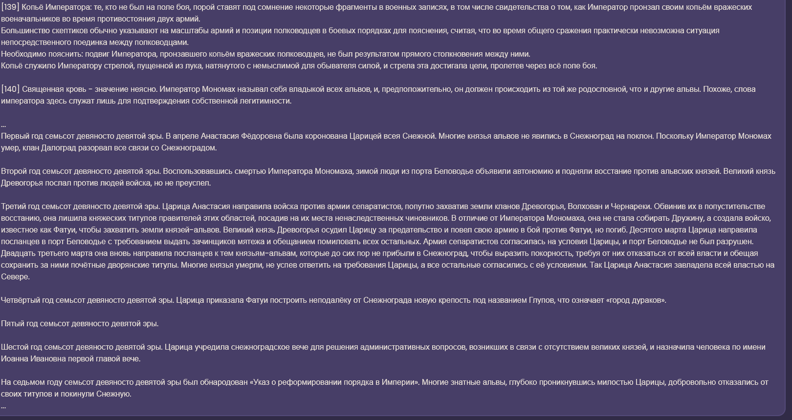 >>6193941 Это не совсем спойлеры, а книжка внутриигровая, так что можешь читать смело. Кстати, в треде часто интересовались кого из славянской мифологии запихнут в Снежную, ну вот уже есть упомянутые вурдалаки, водяные и домовые.