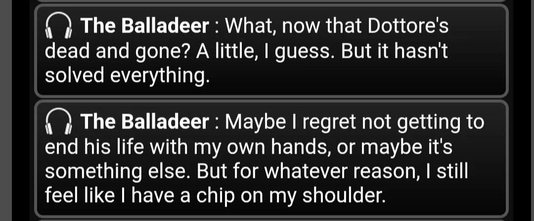 > Хорошо прописан кстати Как злодей, да. Можно немного посочувствовать трагичной судьбе, но растворение дюжины женщин в местном аналоге кислоты - тут уже дядя грань перешёл, такое простить сложно.