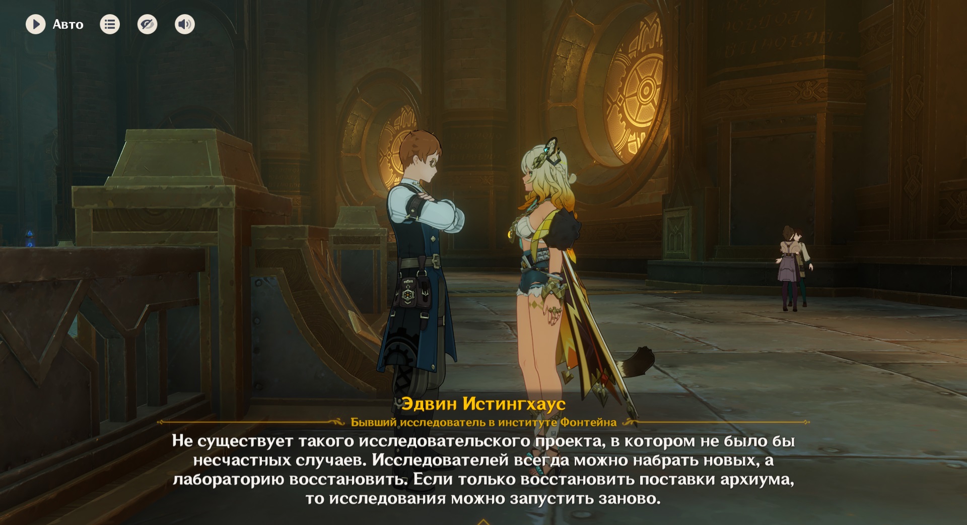 Дочитал мейн квесты из предзагрузки, ну такое. Вроде и интересно, вроде и лёгкий привкус говна во рту в глазах. С новых сторон Дотторе не раскрыли, мотивация яснее не стала, просто накручивание "злое зло злодеит, ну вы посмотрите как он ващще берега попутал!", покуда сам Док заботливо ждал, пока все подготовятся и придут бить ему морду.