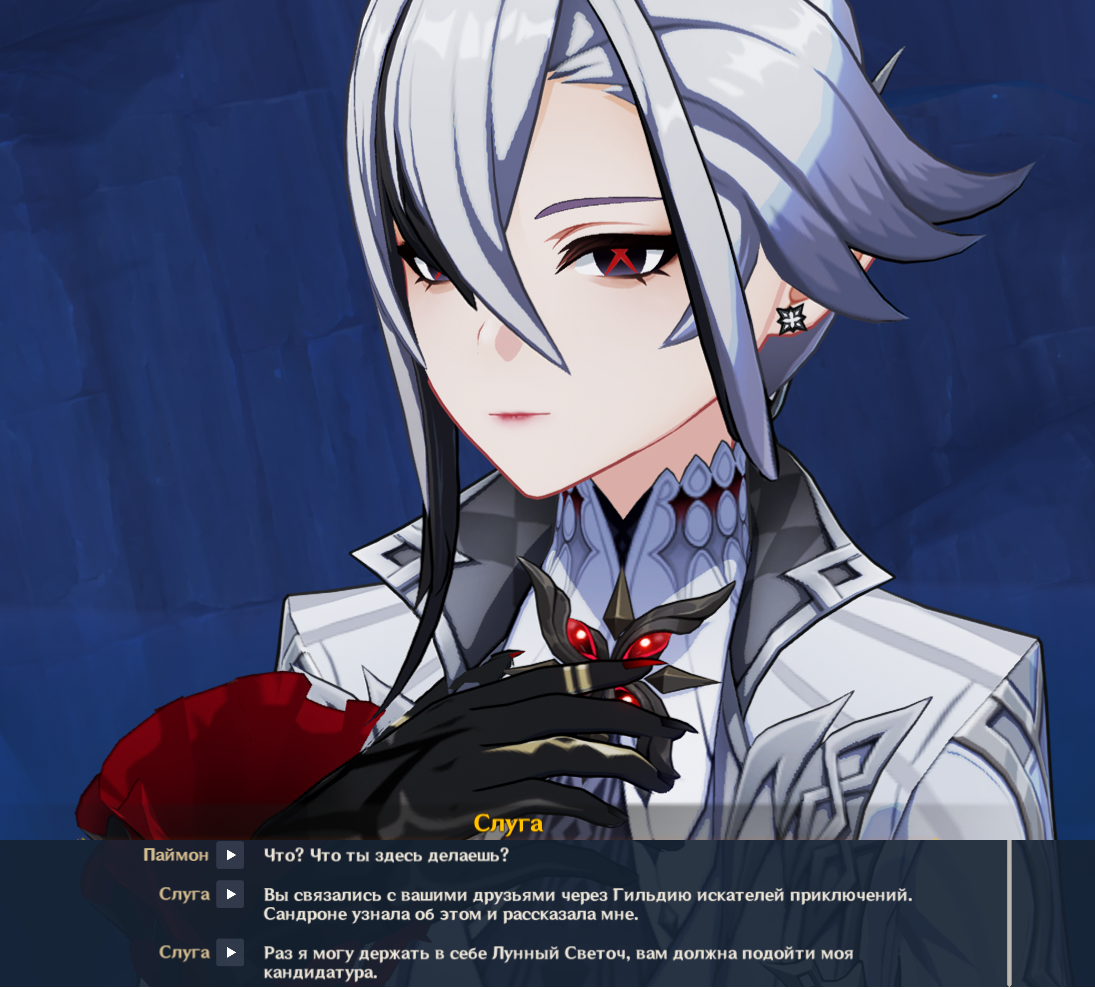В общем в самом начале квеста, когда Катерина рассказывает нам, что будет праздник, Паймона прямо перед ней заговорилась и тему Сандроне подняла, что-то там о неё говорила такое. А потом опомнилась, что Катерина слушает и может всё Сандроне доложить, попросила её держать всё в секрете и не сдавать Паймон своей хозяйке. На что Катерина ответила, что "всё, что связано с приключенцами как заявителями - конфиденциальная информация и огласке не подлежит". Паймон выдохнула и забила.