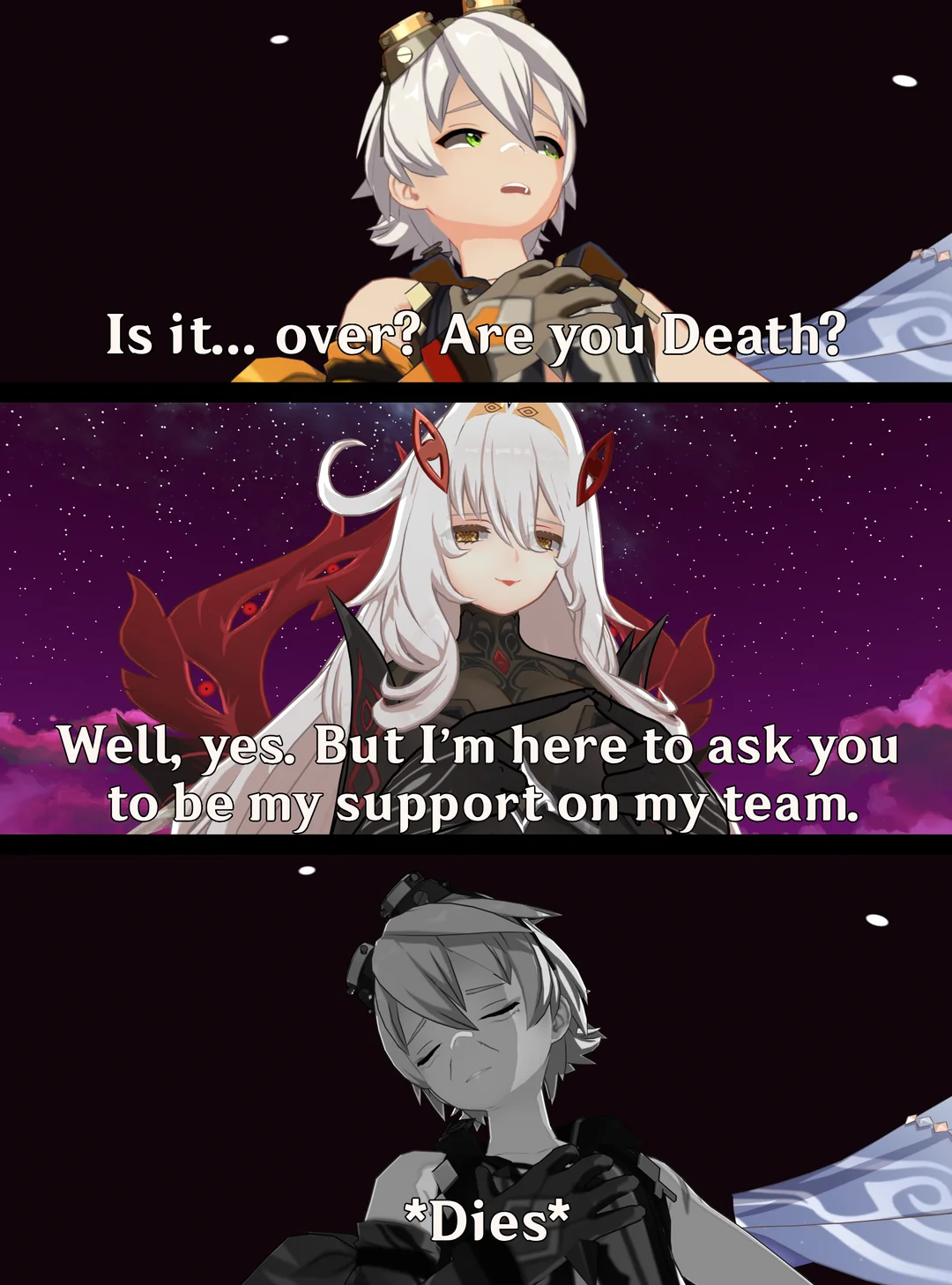 Не волнуйтесь, аноны. ЕОС наступит только в том случае, если мы завтра войдём в игру, а нам Ляо на весь экран вывалит а-ля пикрил экран с надписью КОЛУМБИНА УЖЕ ЗДЕСЬ!!! >>КРУТИТЬ<< А пока нет такого и спендинг ивентов, значит игра живёт и здравствует.