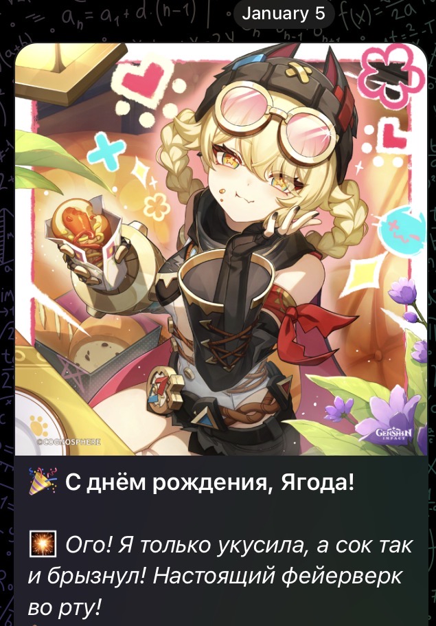 После отправки сообщения не забудьте удалить этот абзац и обязательно сделайте скриншот, который нужно предоставить куратору, чтобы получить в награду 15 примогемов.