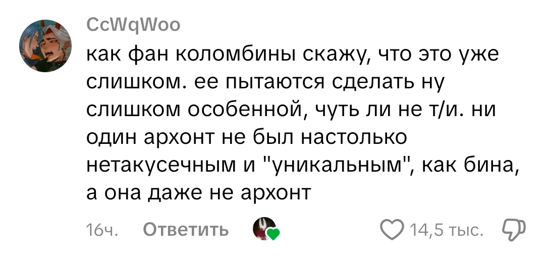 Давайте ещё вместо Паймон в меню Колумбину свою ебаную вставьте, на аватарку её поставьте, забаньте каждый аккаунт, на котором её не будет, делайте, нахуй, а то чего это так мало пушинга, слабо продвигаете, гандоны.