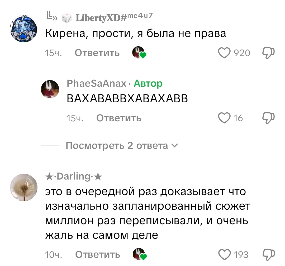 Историю компании Ляойо будут изучать в институтах как пример маркетингового провала: как в угоду новым проектам лишить дойную корову корма и потом удивляться, что продажи не выросли. Хрюк прав, у хойё только аудитория геншина, новую они так и не завлекли, поэтому происходить поляризация.