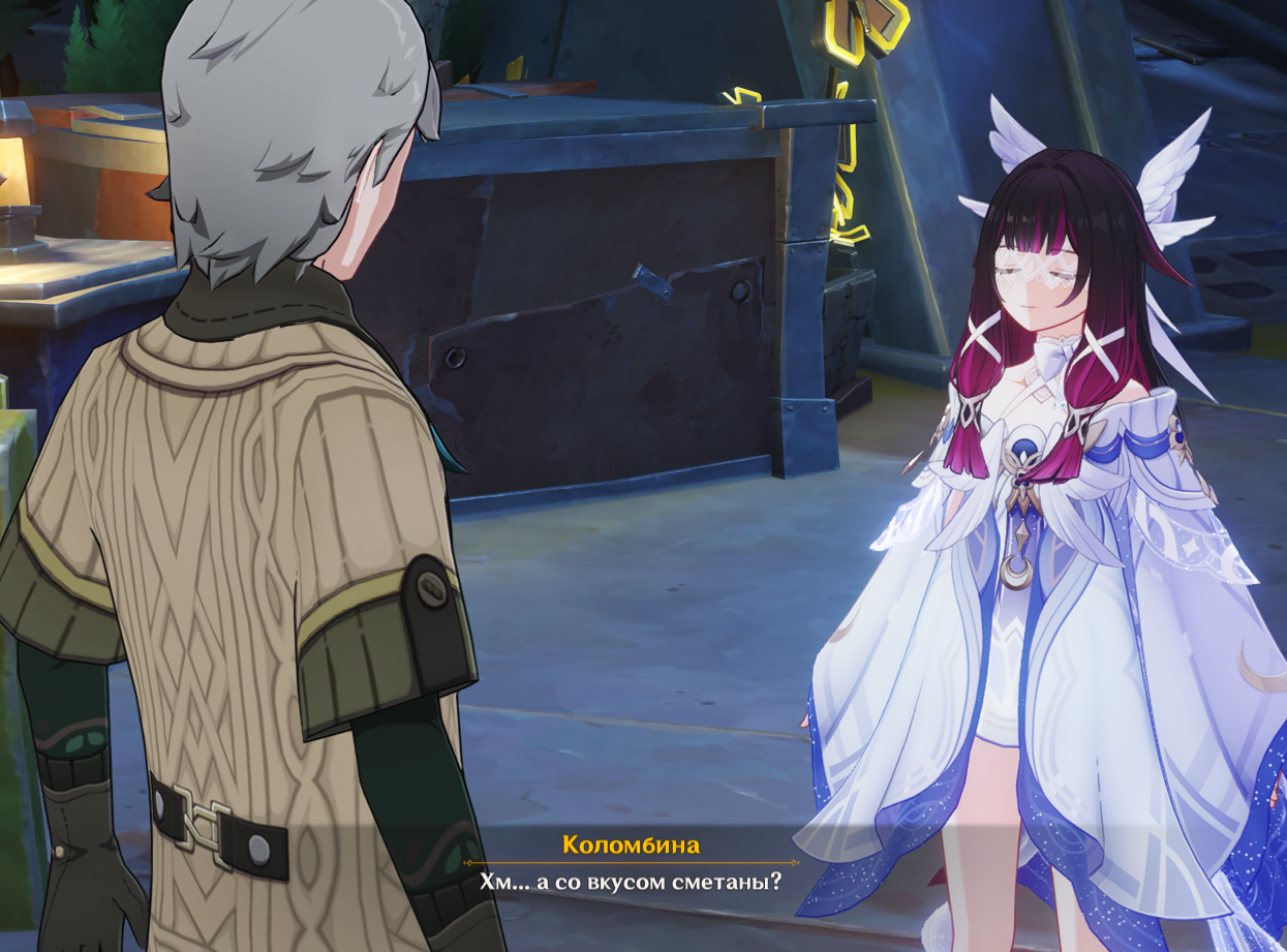 Вот казалось бы Мява: слабо прописанная мери сью с сомнительным дизайном, характер который не сильно отличается от распечатанного на бумаге дуба. При этом Колумбина: персонаж с цельной историей, с интересным лором, с множеством интересных взаимодействий с другими персонажами, с приятным дизайном, даже имеет какое-никакое развитие по ходу сюжета.