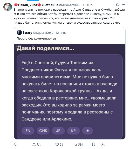 С паймонами все понятно, меня больше смущают шизы, которые занюхивают все кишечные газы от них: мониторят посты в дев, читают твиттеры, хоелаб, реддиты, бегают и составляют коллажики. Когда просто кала уже мало и хочется потреблять дважды выкаканный жепой какой-нибудь обиженной толстухи