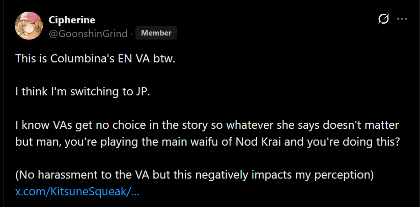 Лично я дико расстроен что опять потенциальный селф-инсерт персонаж оказался калом по балансу. Кит размазанный напополам на 2 типа урона = ни один бонус урона нормально не работает, а так, впол силы, баффы дырки работают вполсилы. И по мелочи отключен планж и требует слишком много свирлов. Блять я просто хочу мощного чара который будет играючи ебать чурлов как Данте но походу нельзя дождатсья подобного в этой параше.