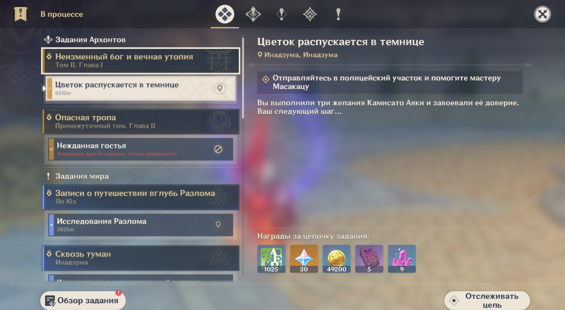 Итэк, покрут->восклицательные знаки, всякая хуйня->прокачка новых персонажей->2 сюжета архонтов 4-часовых->нейро сайд квесты->занюх карты