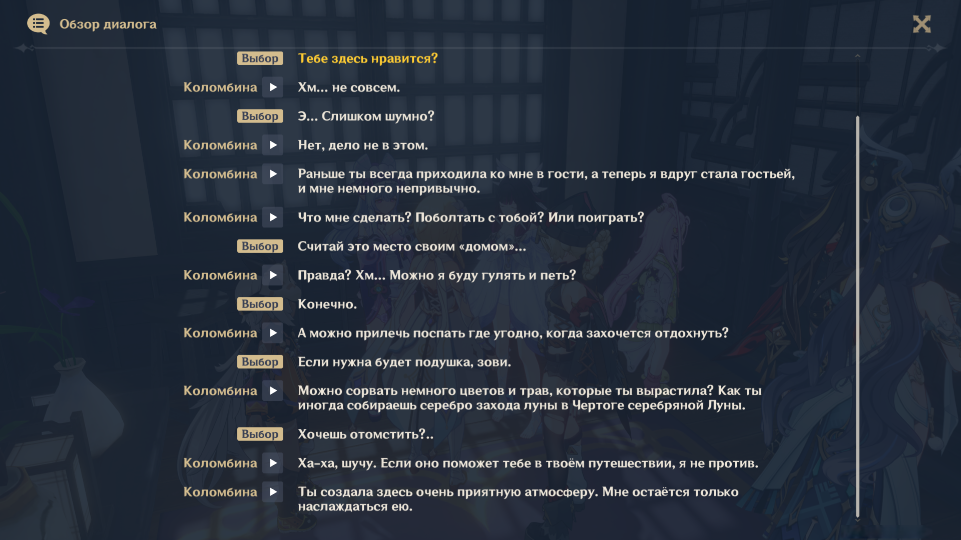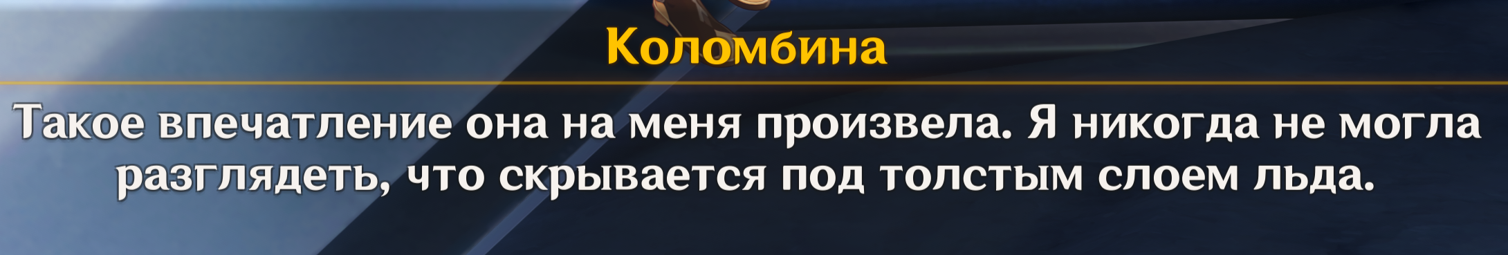 Сцена, где Чмоня наклонился, чтобы поцеловать Коломбину, а она просто рассмеялась ему в лицо и оттолкнула в пропасть, была бесценна. А потом она наконец-то призналась, что на самом деле никогда не покидала Фатуи, это было просто мурашки по коже. Выражение лица Табибиты, когда он понял, что его обманули и предали, лол. А потом удар Коломбины, который отправил его в сон, он будет в коме несколько недель,.