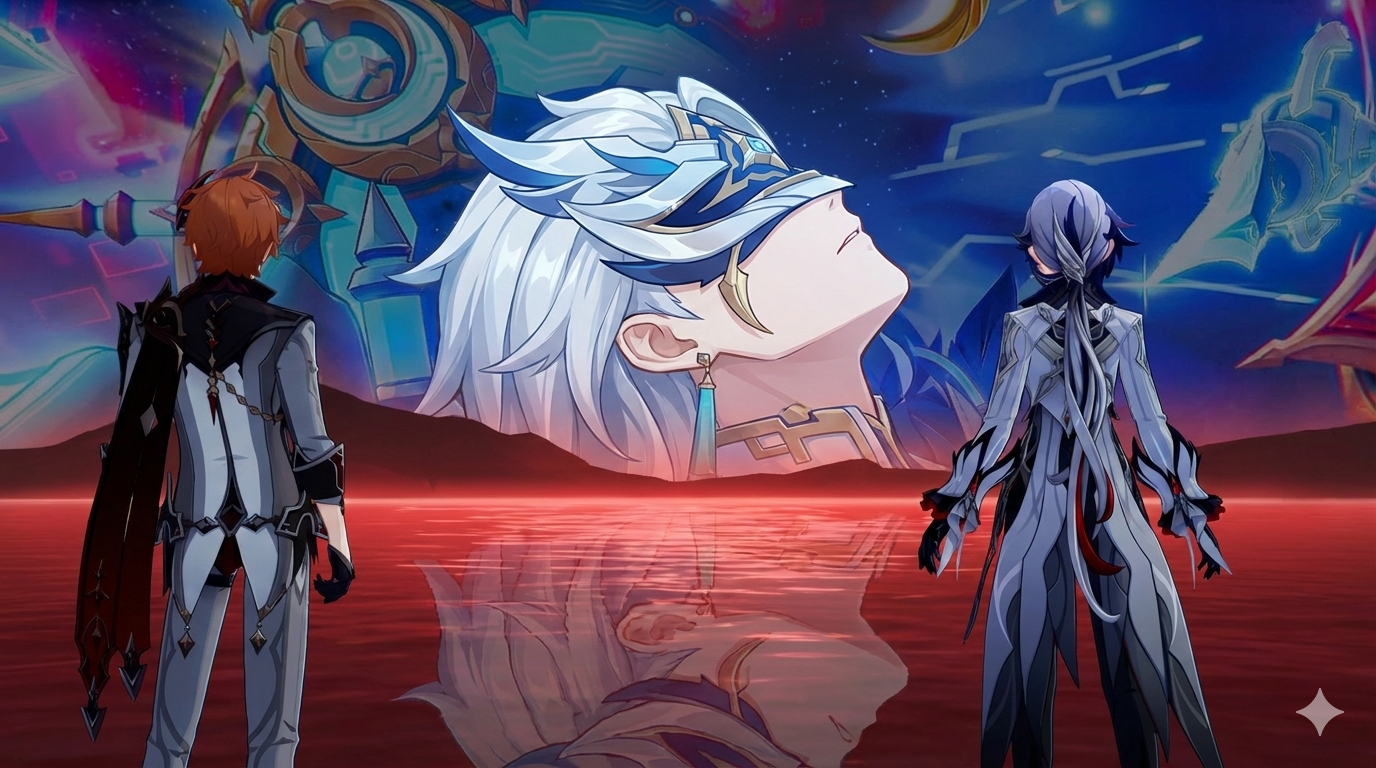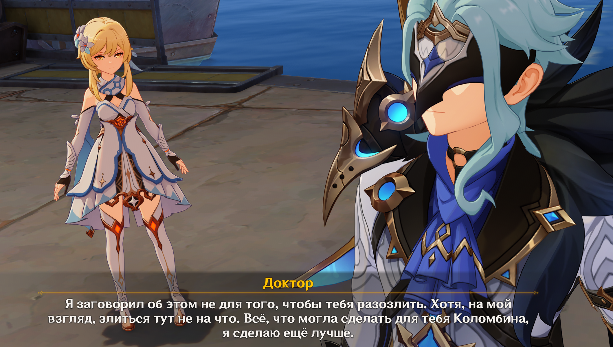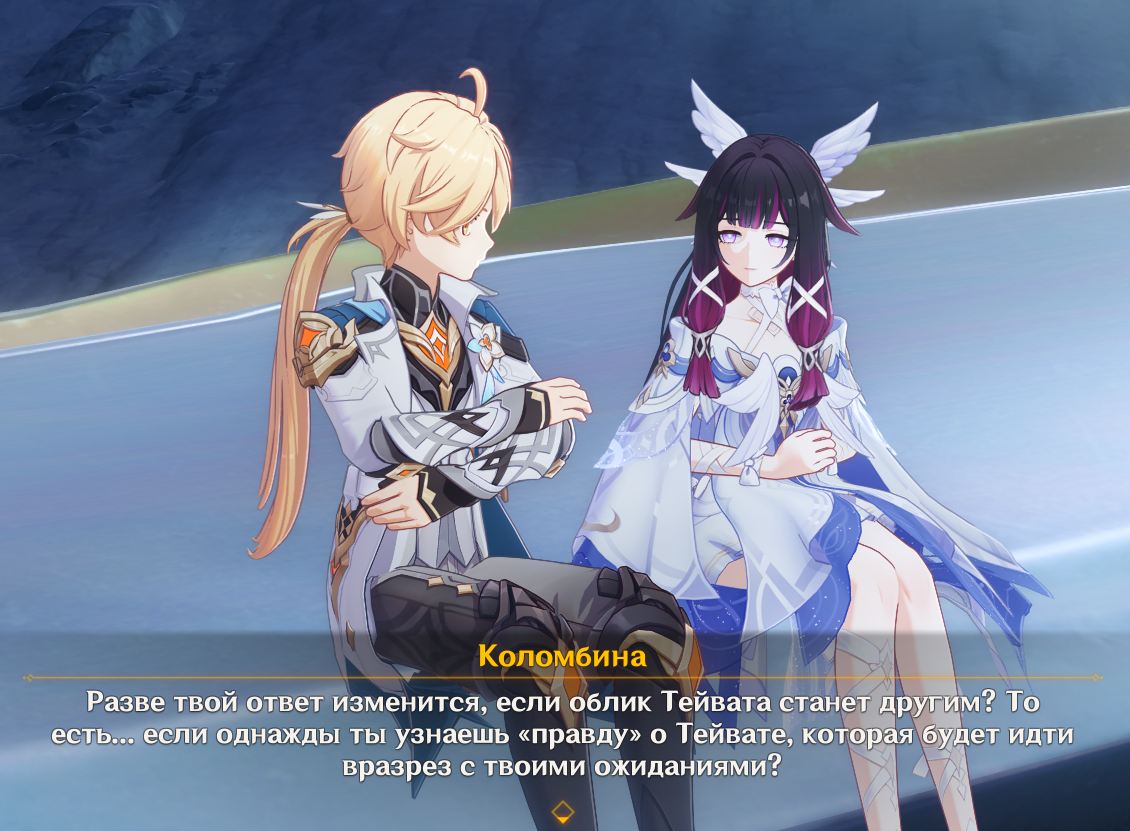 На самом деле довольно символично, что Ляо заигрывает с его маской несколько раз. Когда он небо разорвал, линия прошла аккурат через его лицо, симметрично, отделив его божественную половину маски от человеческой. Когда Чмоня говорил о том, что люди способны измениться, камера фокусировалась именно на человеческой стороне маски, а когда Дотторе исчез в лучах светы, в кадре была только божественная половина. Что в принципе может нихуя не означать, но если так подумать, они же не случайно выбирали именно такие ракурсы, и такой дизайн ему дали. Может ли это быть сигналом к тому, что Чмоня сумел пробудить в нём что-то человеческое, а поражение окончательно убедило его в смене парадигмы и попыткам взглянуть на мир иначе? Да, квест настолько скучный и предсказуемый, что приходится искать смысл в 25 кадрах.