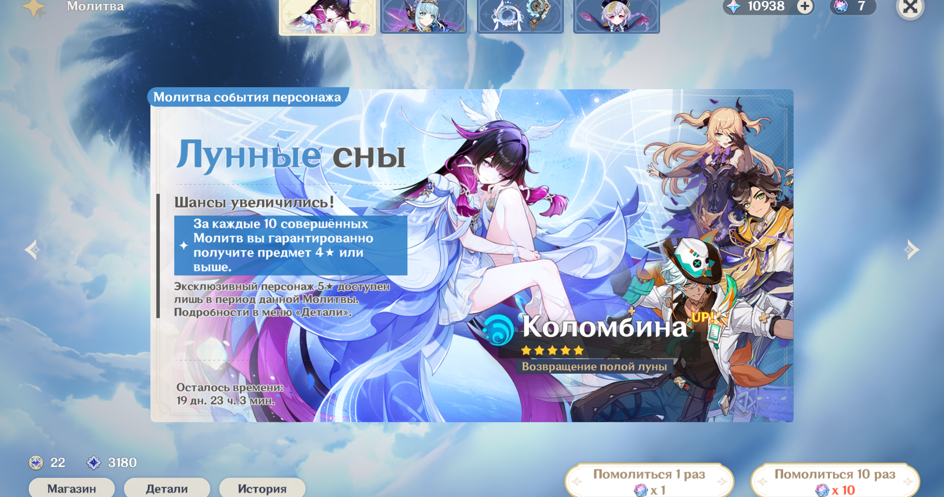 Поздно довольно забрал после уже поздней с4 Моны, прожорливый мотылек, а такая худенькая, а еще с6 Фишль добил, играю с 2.0, может прокачаю теперь лол. Будет играть с Дашулькой моей! Может потом еще на ролл кобылки прогреюсь хз, но пока так.