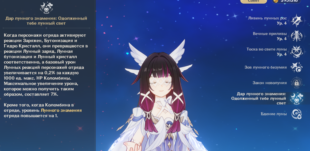 >>6208902 Коломбине нужно 200 энергоса, он есть в старом сете. Коломбина мало дамажит сама, ей лучше одеть старый сет, чтобы бафнуть дамажащих луновичков.