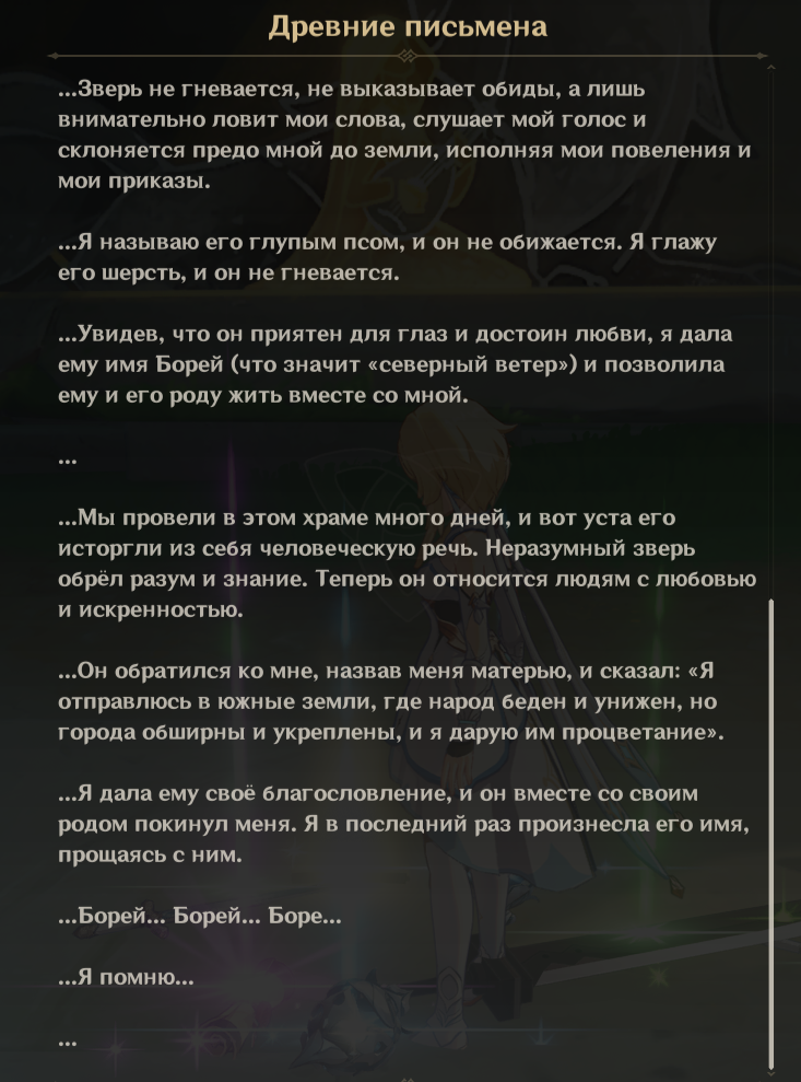 Хуй знает что можно добавить к этому твоему посту. Только что дослушал подкаст Муррчика и Ройта, где они обсуждали (поверхностно) лор Гипербореи, отсылки Белого царя на Ивана Грозного, происхождение всех богов от Фанета и возможный план Фанета удобрить Тейват их останками. Единственное, что для себя вынес - это что каждый видит в лоре Геншина то, что хочет. Кто-то ноет про несостыковки в сюжетке, а кто-то наоборот, из трёх строчек описания артефакта выводит талмуд. Ни те, ни другие свою правоту доказать не смогут: лор настолько жидкий, что его считай что нет. Наверное и после основной сюжетки будет то же самое: кто-то взвоет "и ради этого корячились предвестники?", а кто-то "вввау, да именно об этом же была книга "история лобковой вши" из 1.4!".