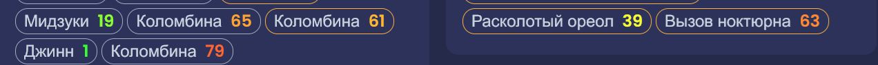 >>6211454 >для Нефер надо с1 Клумбе крутить? Я не стал, нефер тощая, один хуй впитывать еблом не получится. При этом лабуба с2 нефер с2 >p.s. кого на четвертый слот к Нефер ставите кроме Лабубы и Коломбины? Я ставлю редьку, вчера анон писал что ставит бакаробота.