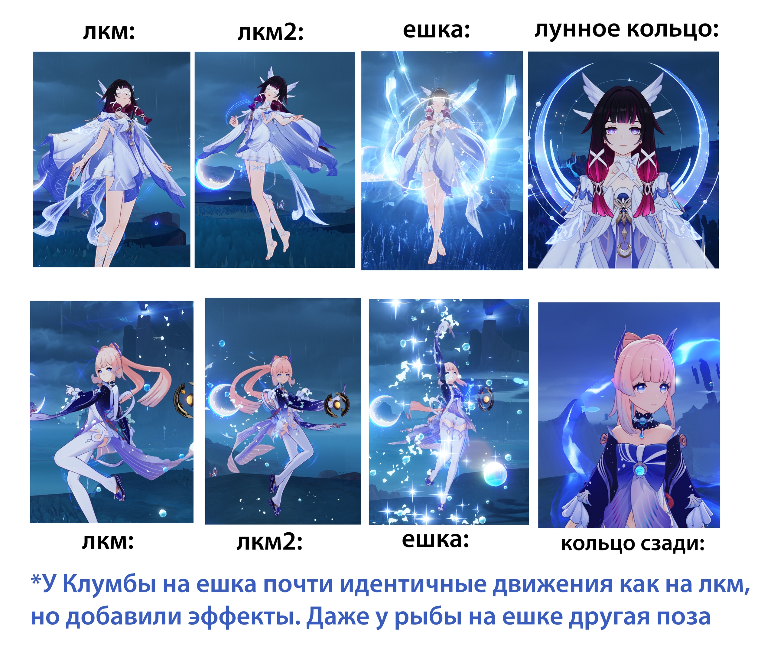 Просите, а почему я выбил вторую Кокоми, но хуже? Нет, серьезно. Посмотрите на их анимации. Давайте сейчас не будем говорить про полезность, т.к. автор ценит визуал в первую очередь, и он не гоняется за циферками. Поставьте клумбу и рыбу вместе, вы сможете определить, какой персонаж вышел раньше, а какой позже? Кокоми вышла 3 года назад, к слову. Я слишком строг? Ну уж простите, что я ожидал слишком многого от персонажа, который, во-первых – бывший предвестник, а во-вторых – местное божество по типу архонта. Естественно я вспоминала Фурину, Арлекино, у Мявуики +- красивое проработанное лицо, которое мне нравится. Посмотрите на анимации Коломбины, у нее они одинаковые почти что. Даже у Коко они более разнообразные, она крутится, переворачивается как рыба. Про лицо я уже вообще молчу, мне на него страшно смотреть. Блаженная… либо упоротая. Так и хочется сказать – поделись своей лунной травой. Разрабы, вы бы добавили больше интересных анимаций, чем заказывать миллионы артов с вайфушкой, которую вы так яро хотите продать. Куда уходит бюджет? Добавить ей уникальную анимацию бега, вот вы даете! Ах да, маленькие луны за спиной открываются с каждым новым созвездием персонажа. Хочешь добавить маленький пиксель за спиной? Доплачивай, давай, гони свой кошелёк, маленький инцеленок.