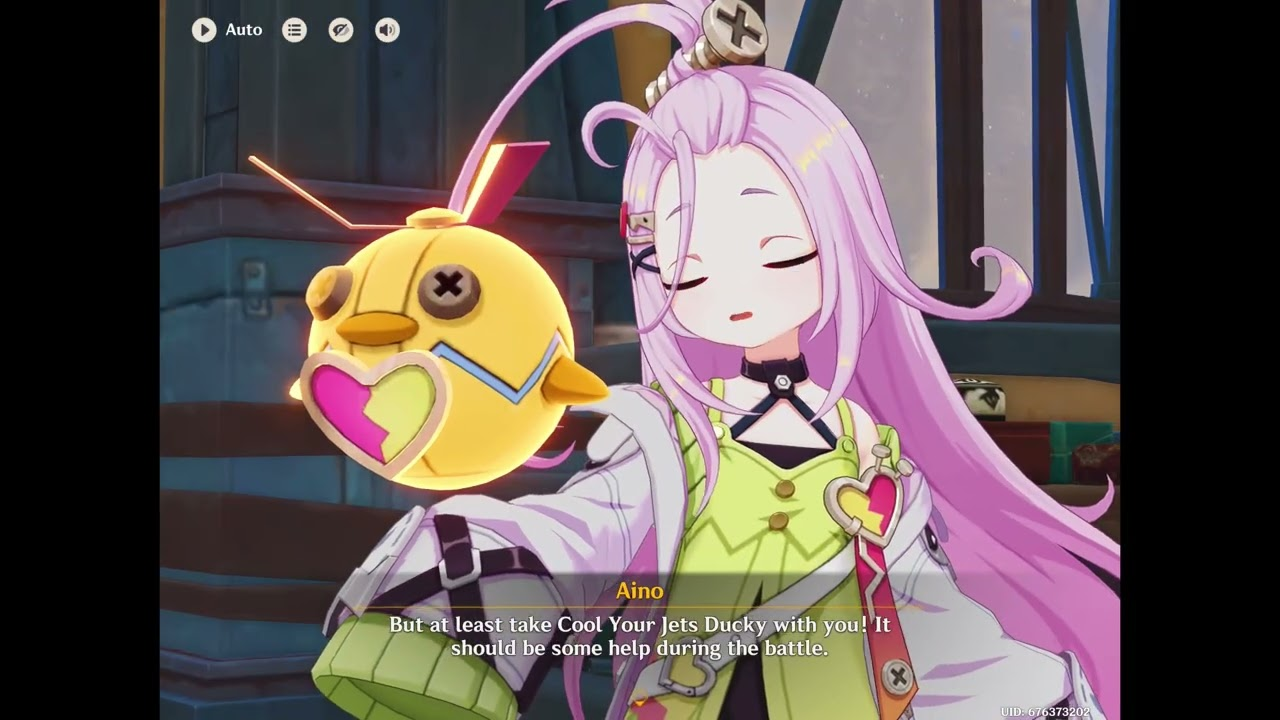 > По сюжетному бою с Рери мы поняли, что гидро путешественник - кал. Что мы можем сделать? > Давайте въебем ульту Айно в его ешку! > Как обоснуем это решение в сюжете? > Айно одолжит свою уточку. > Принято!