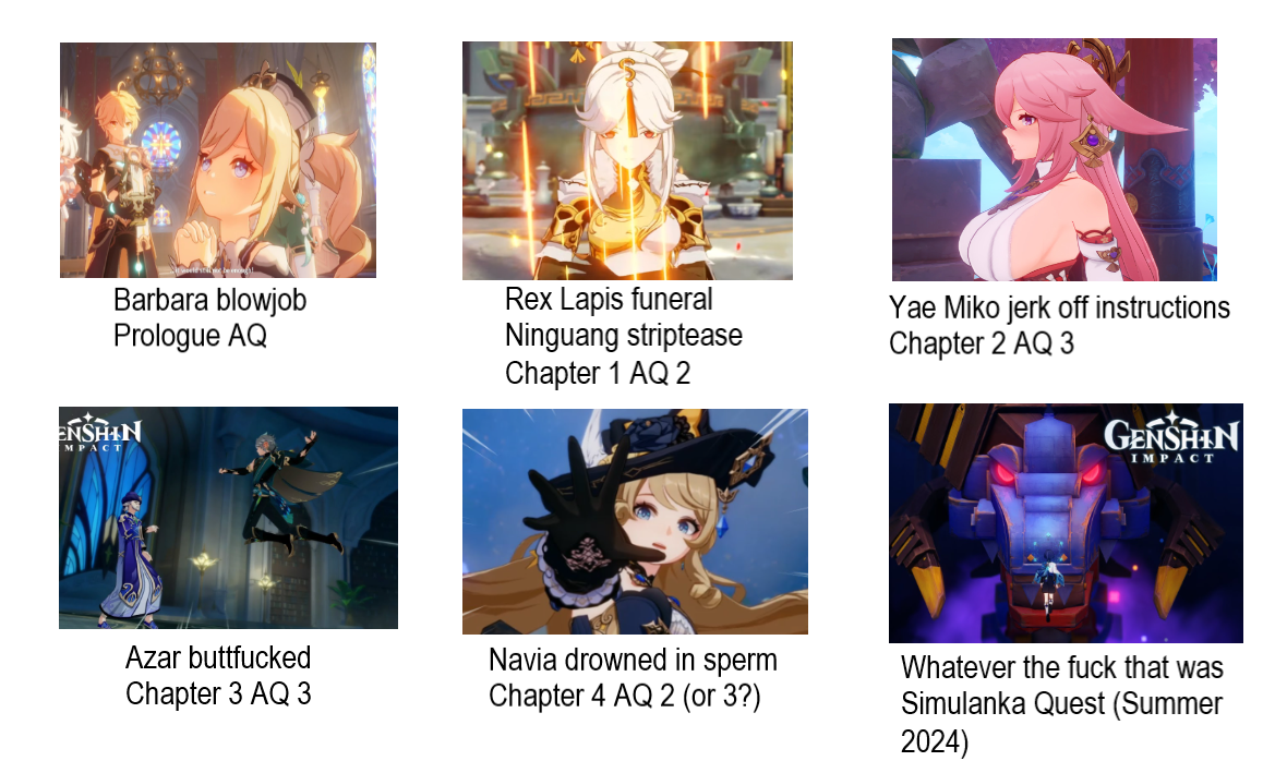 Монштадцы во главе с прототипом главалкаша ебнули декарабиана и вырезали всех его приспешников так что одни камни остались Дед соревновался с адептами в скорости вырезания кхаэнрийцев. Шторка пиздила насмерть чужих богов, а когда ебнули ее подружаню то устроила настоящий концлагерь для своих подданых, забирая глаза и по внутриигровому лору превращая натурально в срущихся овощей. Плюс забила на любые проблемы типа засирающей регион татарсуны, или останков птицы, анигилирующей весь остров.