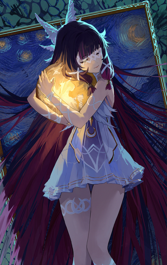 Луна-Колумбина на фоне лунной богини Колумбины... А вообще это постоянная фича, то есть теперь под каждого релизного чемпа так делать будут, или это только под Колумбину прикол, ну потому что она тоже Луна?