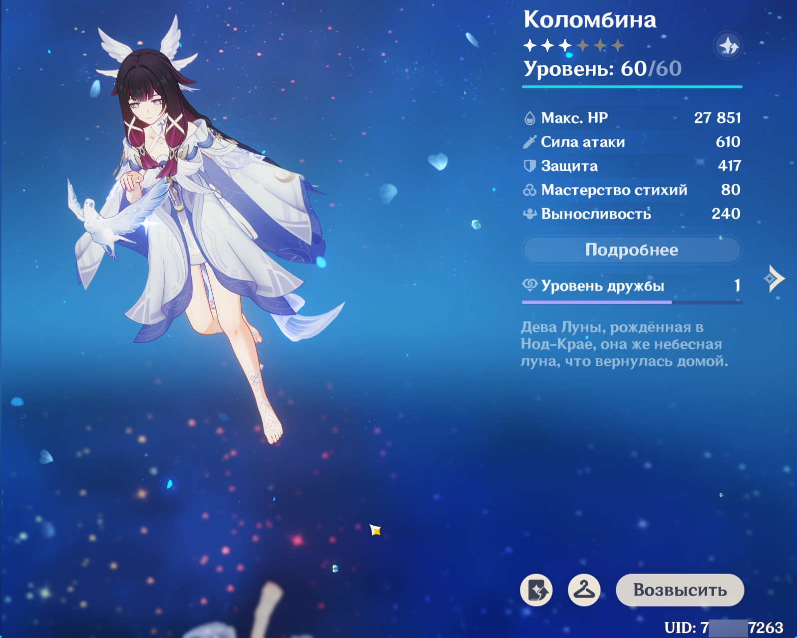 В общей сложности получается Колумбина мне обошлась в 175 круток за этот баннер... Хм, мне казалось, что я потратил больше, но да ладно. Не знаю зачем, но вроде остальные тоже пишут эту инфу. (Алсо, возможно, что это ещё не предел и я покидаюсь ещё крутками, так что в Колумбине возможны изменения)