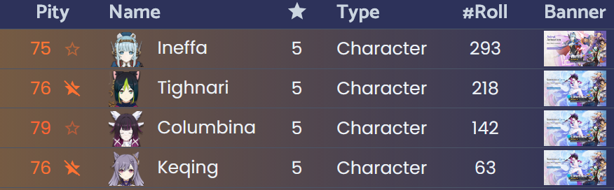 Колумбина - 122 крутки (+30 круток было вброшено в прошлом баннере ещё) Сигна - 53 крутки (Сколько было в прошлом откручено не помню, но оно и не важно.)