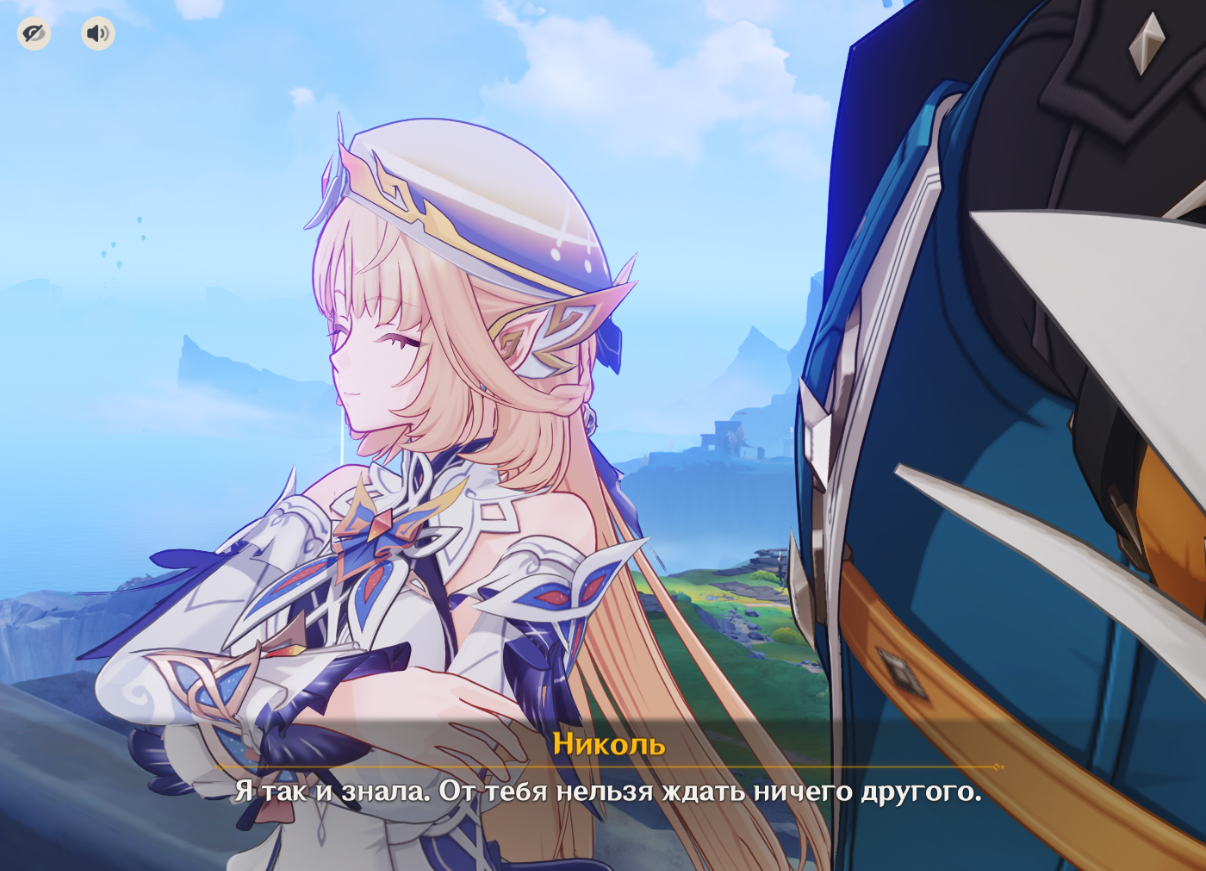 Про Николь же... Ну я о ней и не знал практически. Вообще же в игре не упоминается можно сказать. Ну мб в каких-то описаниях артов или в записочках в жопе мира, но вот чтоб так чётко в сюжете на себе внимание акцентировать - только в Фонтейне на пару диалогов и всё.