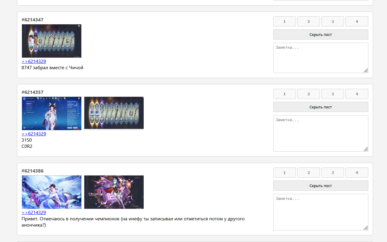 Если вы ждали нужного момента - можете отмечаться тут. Пока что алтарь отстает на 34 часа / 5 тредов. По предзаписям - насчитал 84. Вчера я играл в Геншин Удар 6 часов.