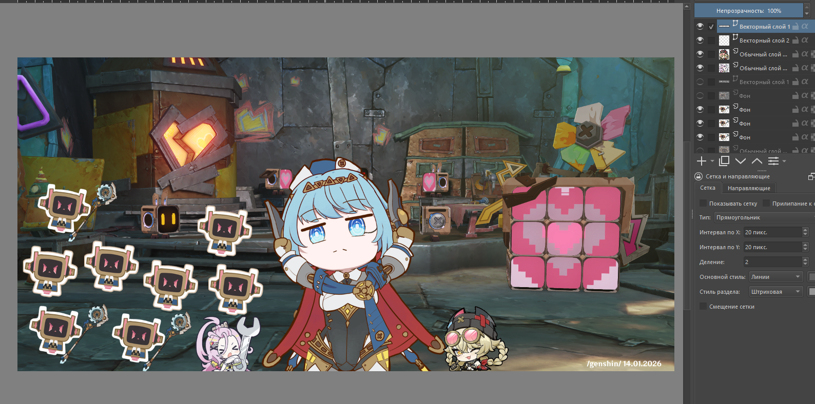 Пользуюсь CLIP Studio Paint. Просто потому что привык в ней рисовать. Файл алтаря кстати весит 109 МБ, и пока не начал с ним работать отъедает 2 ГБ оперативы. Потом начитает писаться история для отмены, CSP съедает уже гигов 8. Иногда даже виснет видеодрайвер.