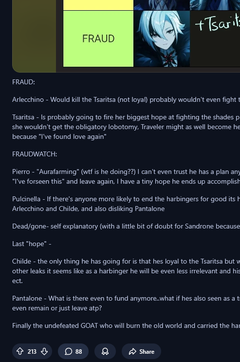 И про то, как ему похуй на то, что паймон всех заебала, и как конца у игры не будет и мы будем вечно делать дейлики за 10 гемов и 1000 моры каждый день