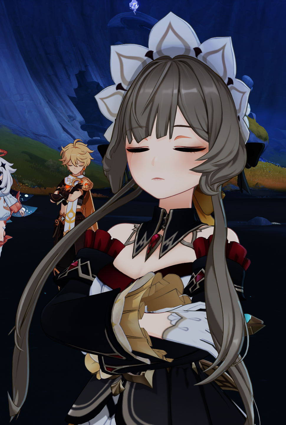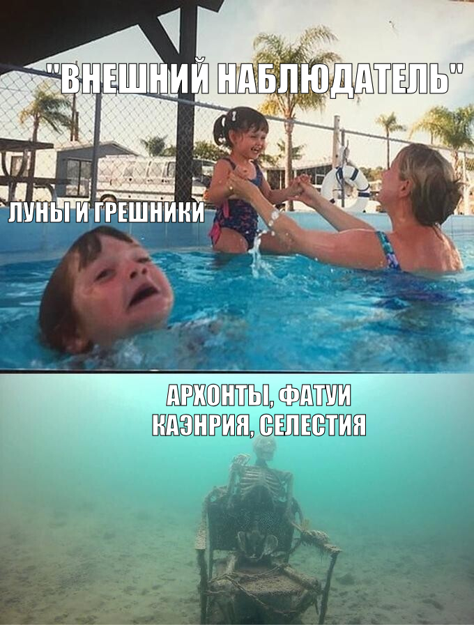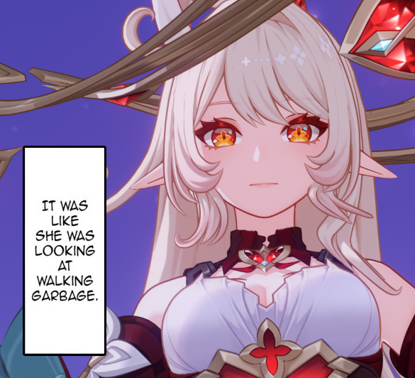 Напомню что архонт терпения буквально "лунный рыцарь", сошла с ума за сотни лет и создала "подличность", за которой скрывалась чтобы не вскрыться в прямом и переносном смысле. Пережила покушение на жизнь (возможно и не одно), а по итогу была предана суду собственным народом, ради которого всю эту хуйню и терпела.