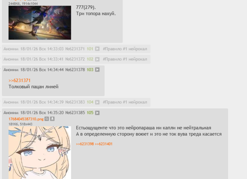 Один порашный долбаеб со своими среднеазиатами, второй нерейлетед-Женовозник, и все это под соусом нейрокала абу-бота Вува-постинг, который мы заслужили