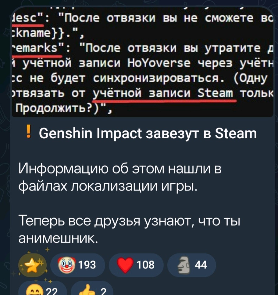>>6232667 Будет забавно если там будет низкий онлайн и можно будте геншинят в треде спрашивать почему Лимбус компани популярнее геншина, а потом читать эти отмазки про то что есть свой клиент и тп и др и в стиме никто не играет. Ну короче как зюзятки раньше бегали с табличками к нам, а потом когда таблички неудобные стали, стали нашими отмазами пользоваться, что мол это только мобилки, что в зюзю больше на консолях и пк и прочее.