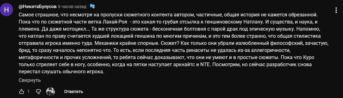 Ну и сравнение с натланом полностью некорректно, и выглядит как попытка натянуть на глобус сову. Общего ровно ноль. Но если накидать пару мазков то можно сказать что все одинаково. Это сравнение даже грубее чем тот эпизод из черных парусов, где пират пытался продать картину одалено напоминающую другую, и не понимал что не так - фрукт и фрукт, сиська - сиська Натлан и Лахай-рой даже не так близко, но человек в пасте умудрился еще более пространно накидать и сказать что одно и тоже.
