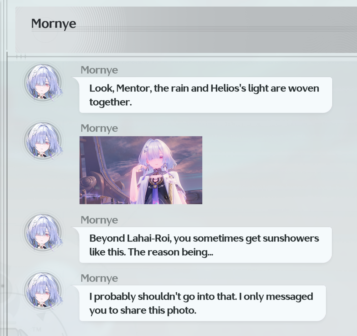 >>6239090 На этом моменте я сначала подумал что имеется в виду какое-то обещание данное ровером до ухода из академии и вайпа памяти, поэтому выбрал вариант что не помню, а потом дошло о чем она говорит, нажал альтф4 и сделал уже правильный выбор
