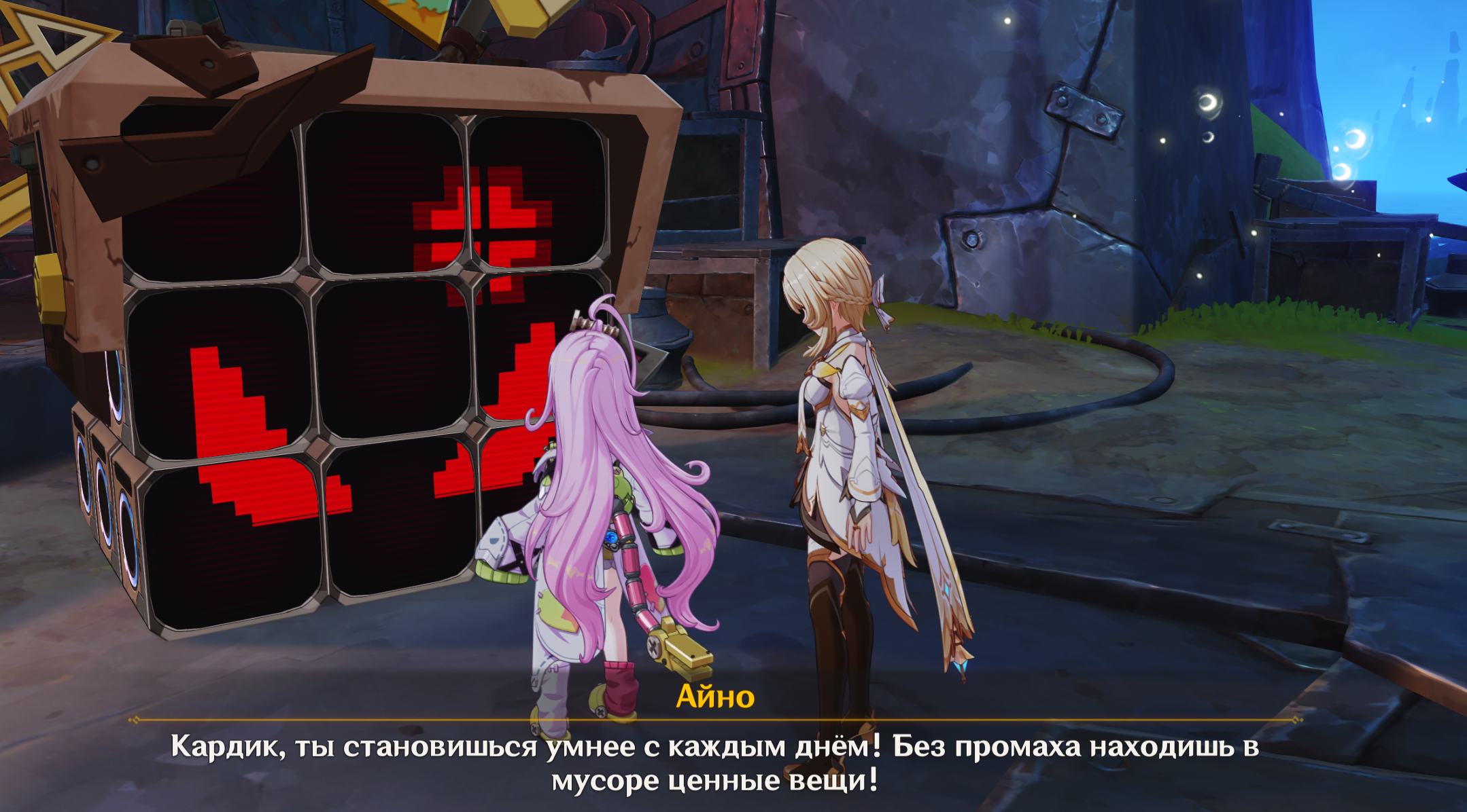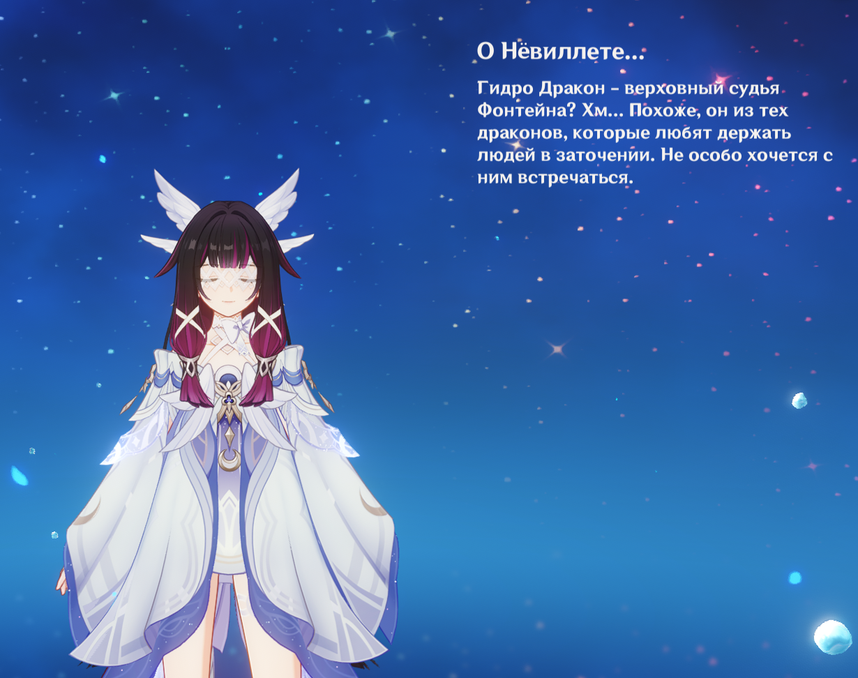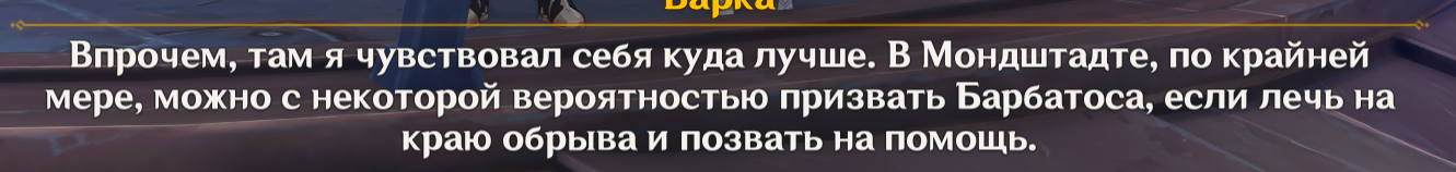 Я напоминаю, что Геншин эта та франшиза, где упорото игнорируются самые мемные у фандома персонажи, например Вареса, Йоимия, Ноелль, Чичи, Геодед, Навия, Кека, зато про Туалетыча и Кальбедо километровые этажи текста и их реплик в сюжетках. Но хуй с ними, это хотя б игральный персонажи, самое большее внимание уделено каким-то неписям, на чью историю мне насрать. У нас игральных персонажей уже больше 100, это ж целая деревня, а неписи продолжают занимать 80% болтовни. Я когда уже вижу непися с синеньким восклицательным знаком, то мне плохо...