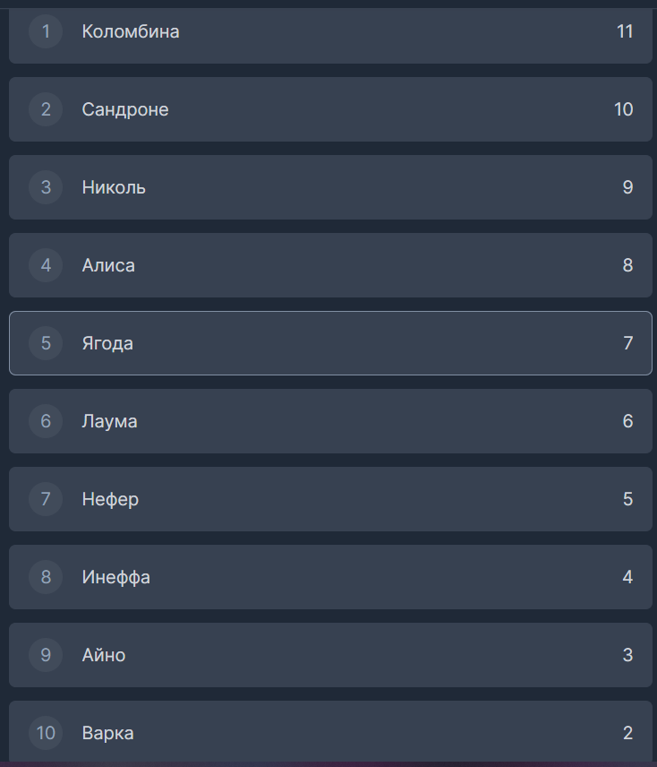 Ты перечислил персов, которых фанаты сами в мемах сливают из-за их посредственности в геймплее или лоре, а теперь ноешь, что их игнорят? Йоимия до сих пор в топе дамагеров по АА, Ноэлль - вечный щитотанк, Чичи в нише хила с зельями, Навия свежая и востребована. "Мемные" они только потому, что вы их так окрестили, а не Mihoyo их скамят. Вarka вообще еще не вышел, так что жди релиза, нытик.