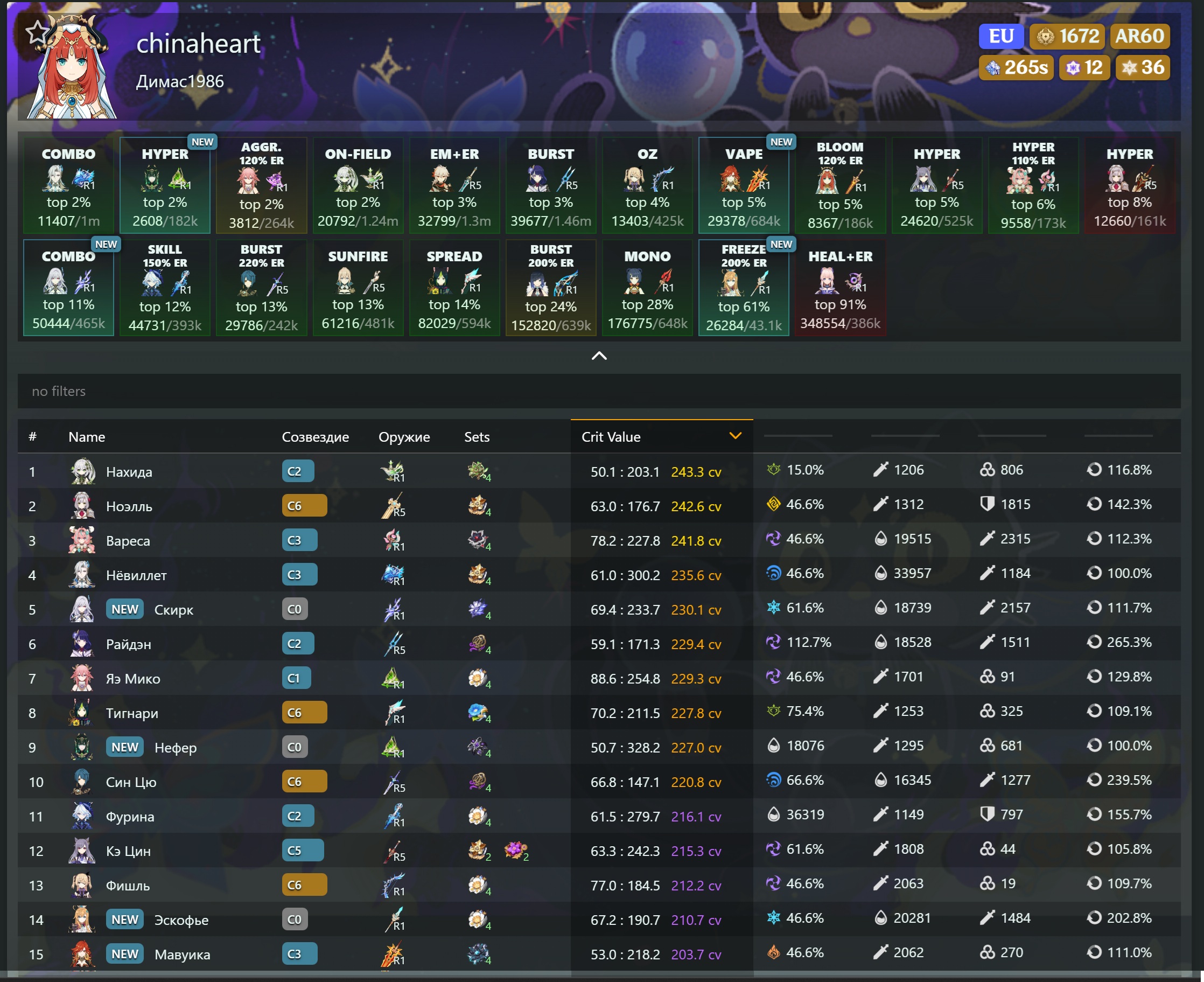 ✦ Гача-калькулятор https://hutaobot.moe/tools/gachacalc ✦ Показать персонажей картинкой https://akasha.cv/ ∙ https://enka.network/