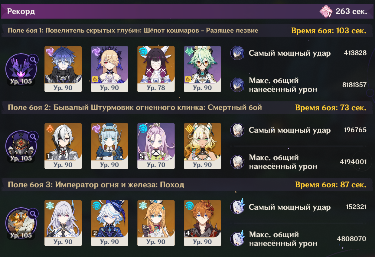 Передрочил половину артов на надоеде и попытался выжать максимальный ку, хп и мс с сохранением энергии, сразу был заметен прирост урона на щите, прошёл с первого же трая. Сигны на Шило и Варесе. Нахида с фавонием. Думаю с2 Клумба и Фурина заменяются на сигны у дд и пройти можно будет с такими артами на всех.