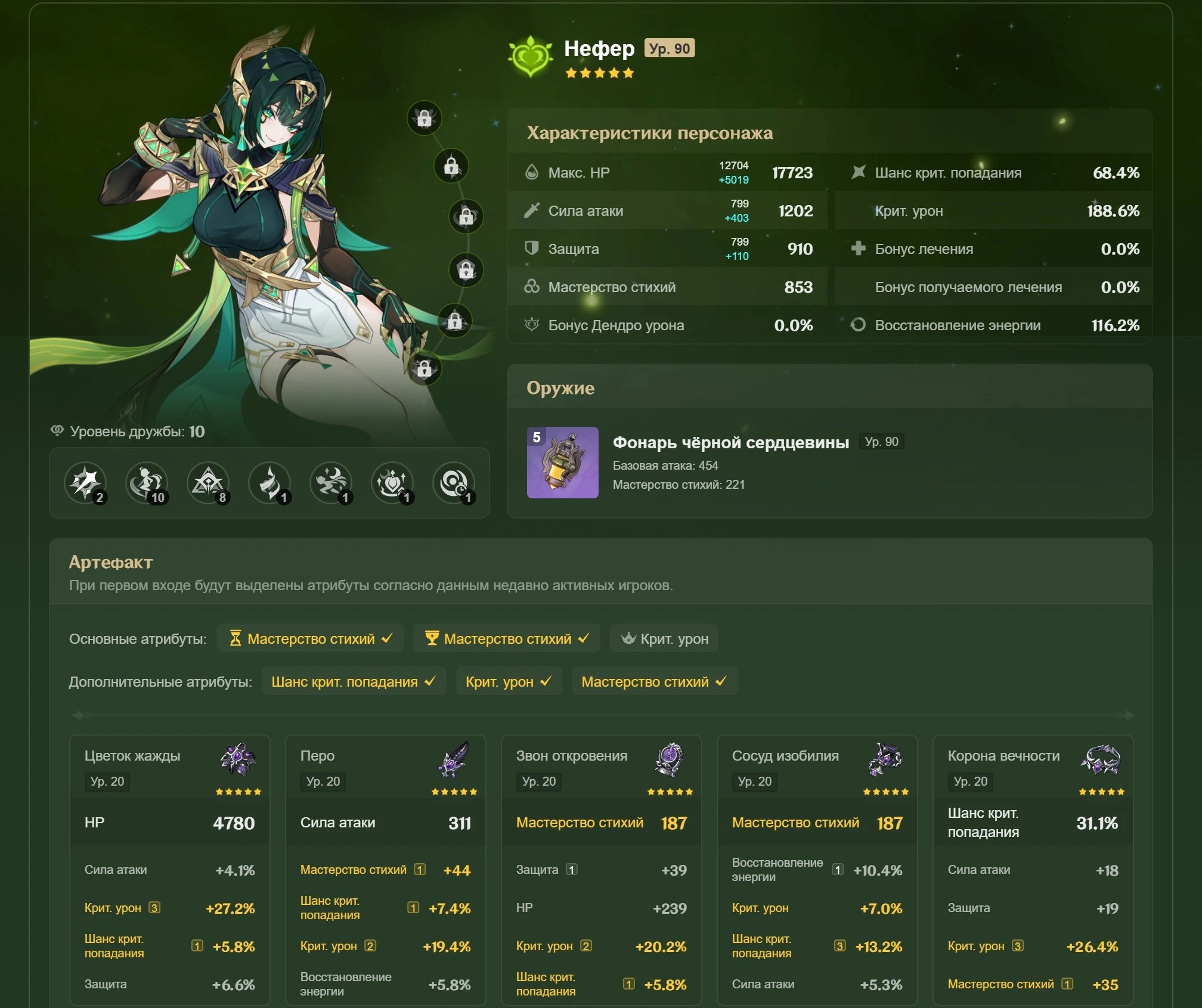 3. Лабуба ебашит сильнее Нефер. Потому что все арты на МС+ЕР+криты падают ТОЛЬКО на сапорт-сет.