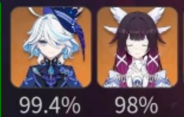 С7р1 Дайски, с2р1 Шилонен, хотя она тут чисто хп заливает своей констой Фурине, лень было бениса переодевать и ставить, разница думаю не особо ощутимая была бы, Фурина с1, Мона с4.