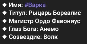 ✦ Гача-калькулятор https://hutaobot.moe/tools/gachacalc ✦ Показать персонажей картинкой https://akasha.cv/ ∙ https://enka.network/