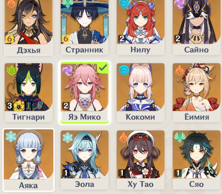 Добавь айно или фурину, на худо конец кокме, и нахиду.