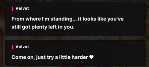 Ну не. Все-таки я ебал такие заигрывания с темой шлюховатости. Вел-то сасная, и я верю, что она девственница и бережет свой цветочек только для СКК, но, сука, слишком много вот такой вот хуйни на десять строчек текста.